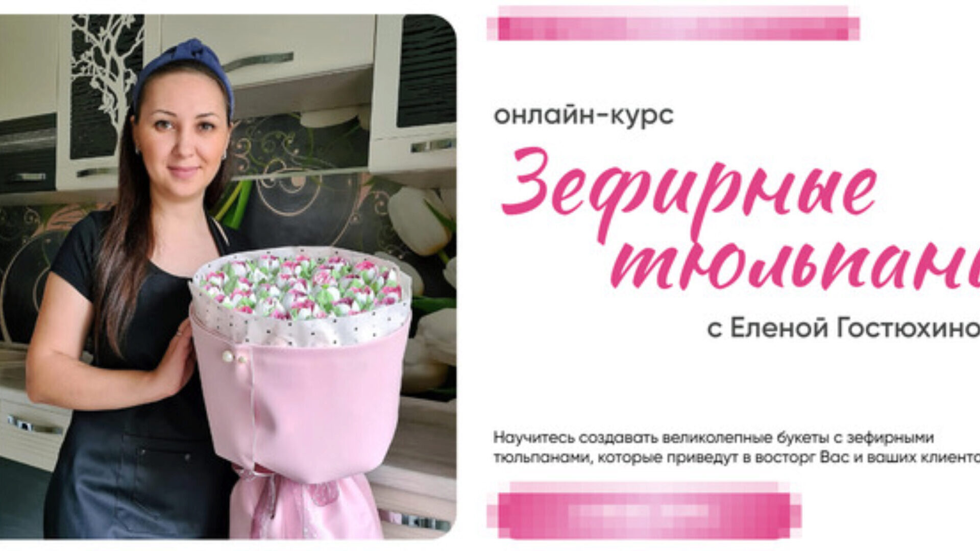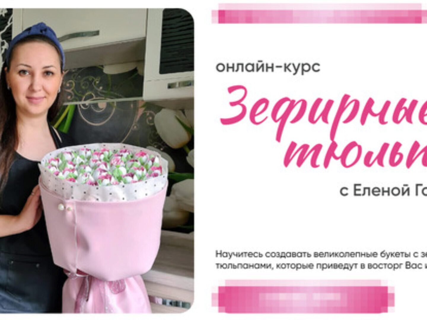 Благодаря курсу, вы сможете: Научиться создавать красоту, неотличимую от живых цветов Узнать все секреты приготовления зефирной массы и освоить несколько техник отсадки тюльпанов (с насадкой и без) Внести разнообразие в букеты с помощью новых весенних цветов Начать брать первые заказы, освоив самый