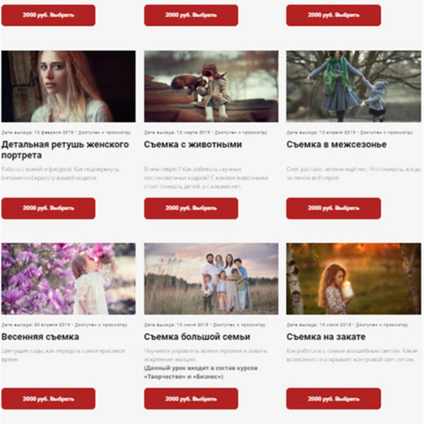 Авторская программа курса. Такого предложения на рынке нет. 12 уроков охватывают практически все сферы детской и семейной фотографии