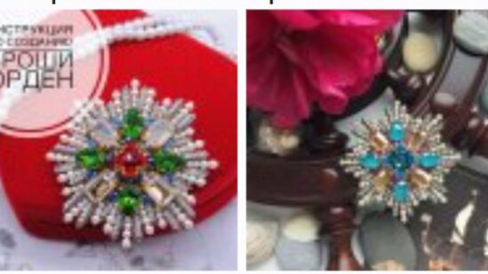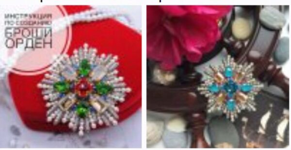 Это пошаговая инструкция по созданию броши-ордена из бисера и кристаллов Swarovski. МК представлен в виде файла со списком материалов и инструментов, подробными фотографиями, пошаговым описанием процесса. Также в инструкции вы найдете видео-урок, в котором показан процесс работы над самыми сложными
