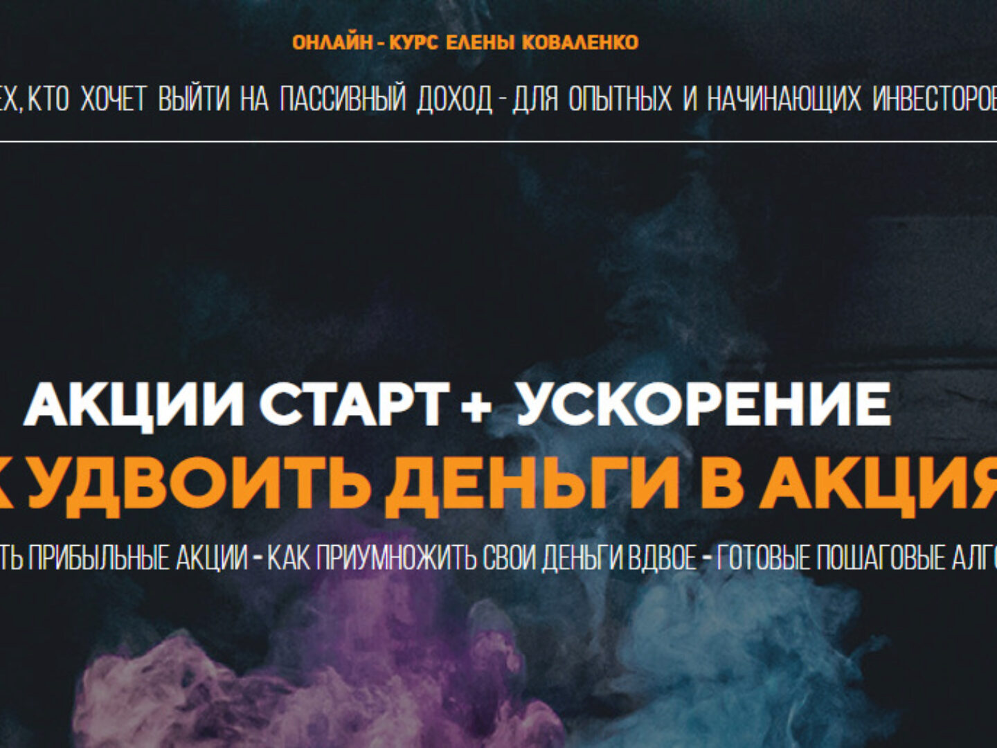 Елена Коваленко «Акции старт + Ускорение как удвоить деньги в акциях. Пакет Скорый»