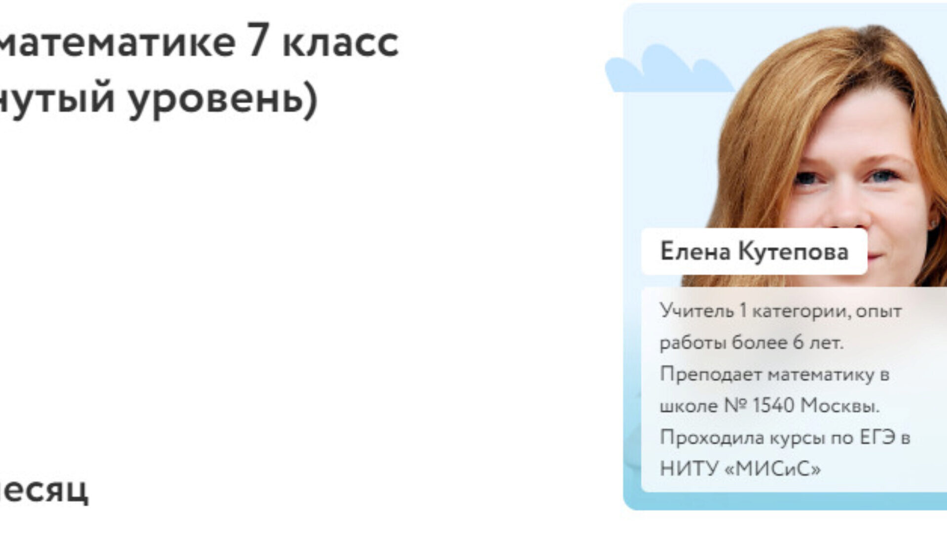 Отзывы о курсе «Курс по математике 7 класс. Продвинутый уровень 2022» от Елены Кутеповой