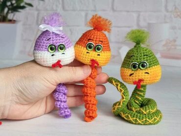 Игрушка бескаркасная! Самостоятельно сворачивается в спираль. Идеально держит форму. Длина Змейки по спинке около 35 см. Змейка не раскручивается, диаметр витка примерно 5 см. Расход пряжи Himalaya dolphin baby около 6-7 г основного цвета и 4-5 г дополнительного. МК в формате pdf содержит: 13