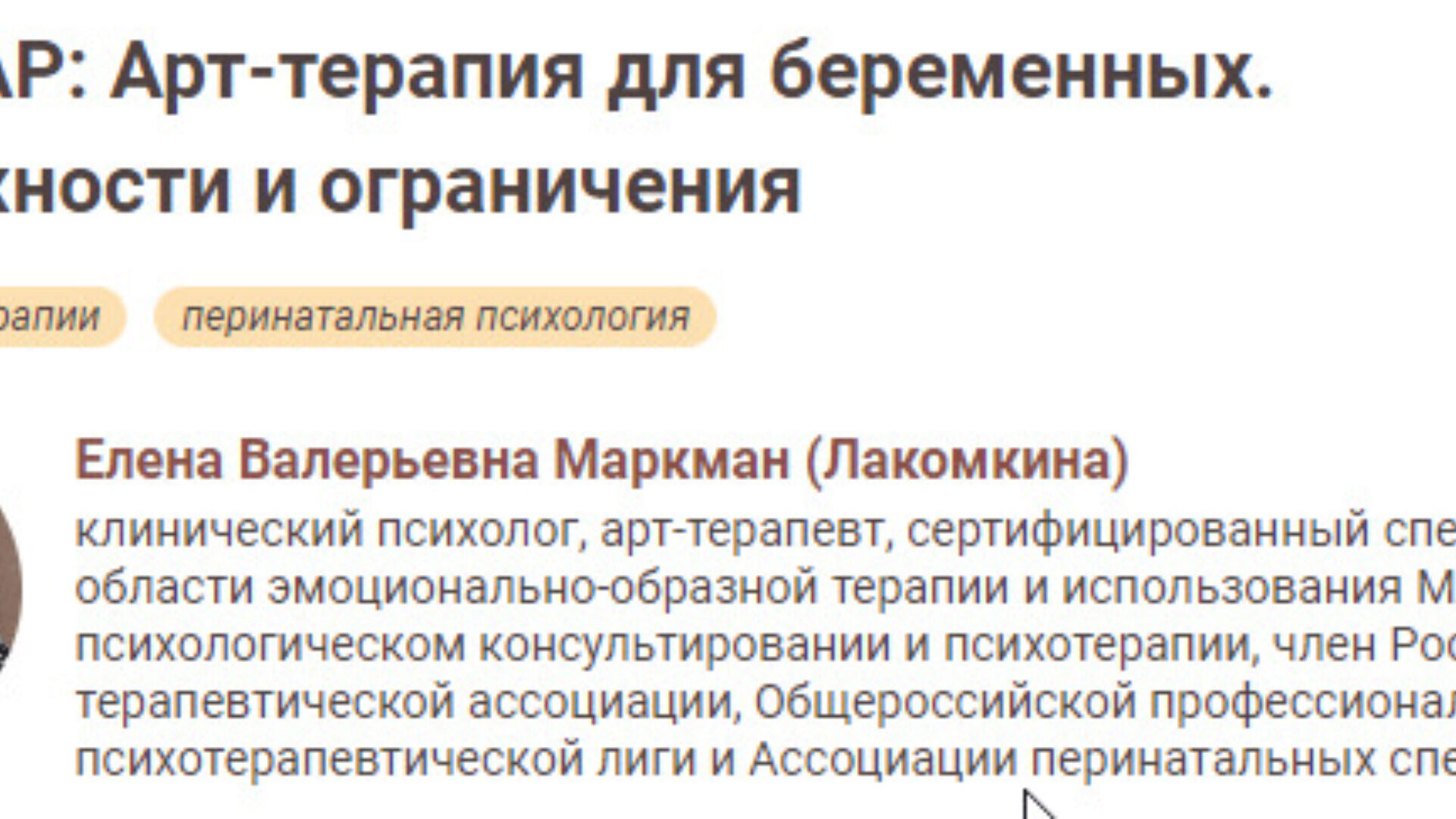 Елена Лакомкина «Арт-терапия для беременных. Возможности и ограничения»
