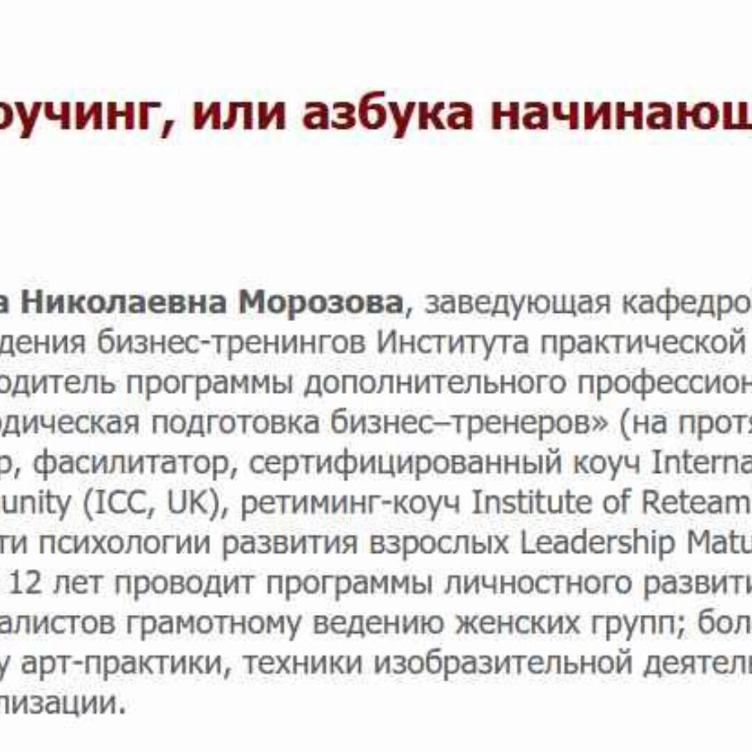 Елена Морозова «Введение в коучинг, или азбука начинающего коуча» — Иматон