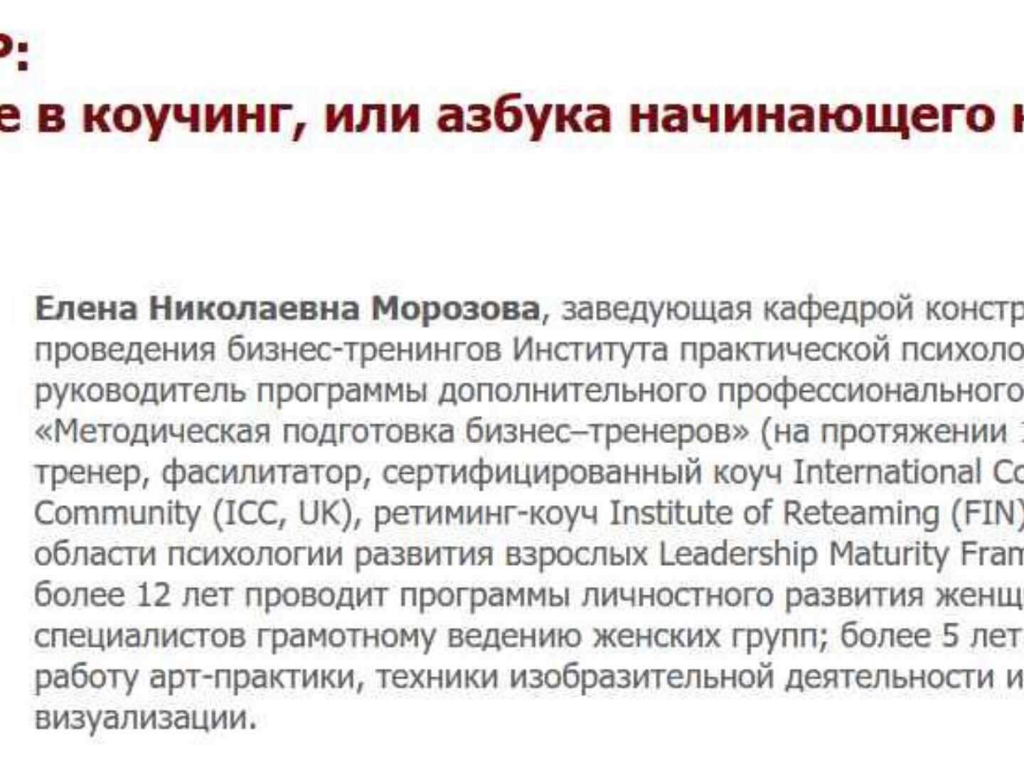 Отзывы о курсе «Введение в коучинг, или азбука начинающего коуча» от Елены Морозовой