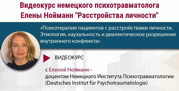 Онлайн семинары немецкого психотравматолога Елены Нойманн Психотерапия пациентов с расстройствами личности.Этиология, каузальность и диалектическое разрешение внутреннего конфликта Данный обучающий курс состоит из вводного обобщающего семинара с последующим углублением в природу каждого отдельного