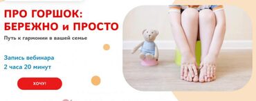 Описание темы Ведущая вебинара: Полина Харина. Практический опыт и научные данные о формировании навыков сна и хождения на горшок у детей от 0 до 4 лет. Пошаговые инструкции, основные правила и нюансы. Вебинар будет доступен к просмотру 36 часов с момента запуска. Планируйте, пожалуйста, Ваше