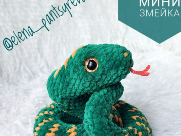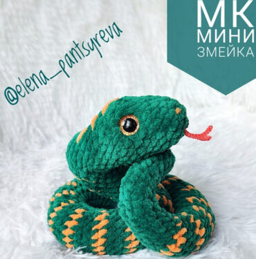 Игрушка бескаркасная! Самостоятельно сворачивается в спираль. Идеально держит форму. Длина Змейки по спинке около 35 см. Змейка не раскручивается, диаметр витка примерно 5 см. Расход пряжи Himalaya dolphin baby около 6-7 г основного цвета и 4-5 г дополнительного. МК в формате pdf содержит: 13