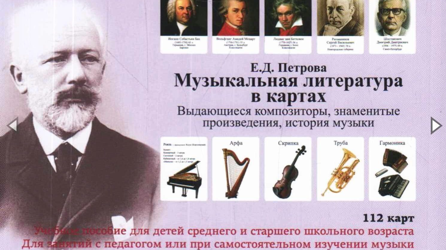 Карты содержат всю необходимую информацию по музыкальной литературе, включенную в 7 классов музыкальной школы.