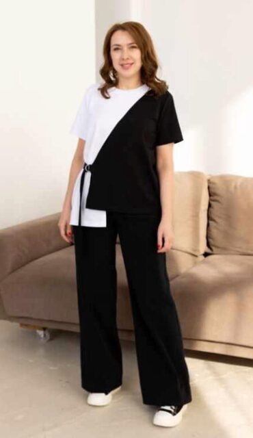 Выкройка представлена в размерах 40-60 на рост 170 см. Футболка (лонгслив) свободного кроя, прямого силуэта, плечо немного спущено. Два варианта длины рукава – короткий и длинный с манжетой по низу рукава. Два варианта обработки горловины – окантовка бейкой на распошивальной машине, либо обтачкой