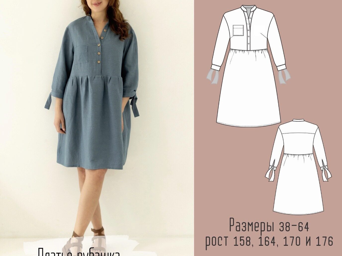 Модель Елена, платье 44 размера рост 170 см, реальный размер (на момент фотосессии) 44 рост 167 см. Параметры тела: ОГ 87 см, ОТ 71 см, ОБ 96 см. Размер выбран по обхвату груди. Сшито из льна с вискозой.