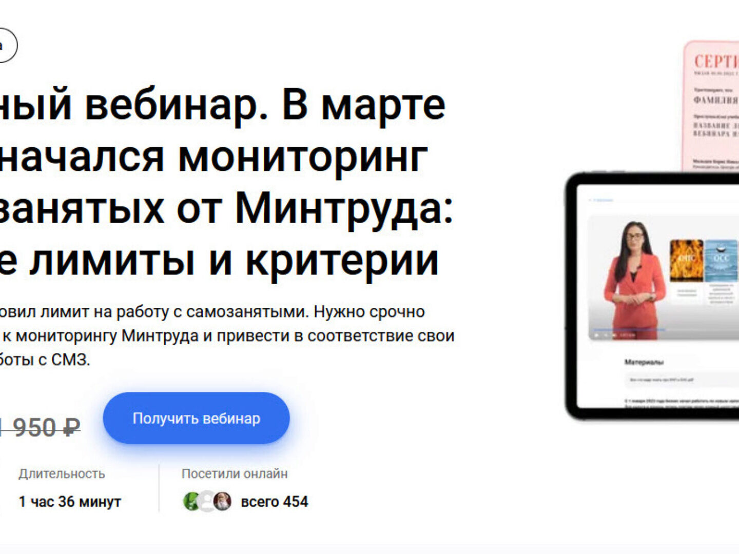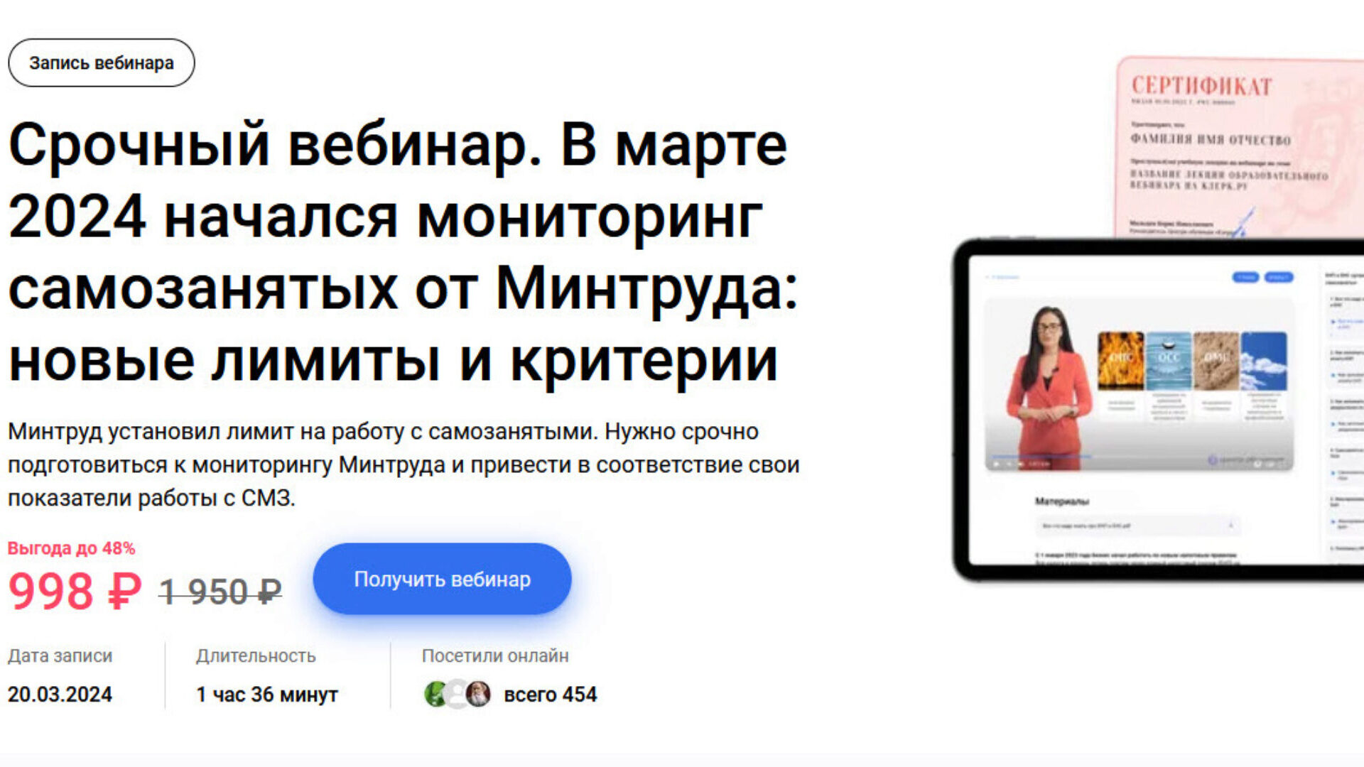 Елена Пономарева «Срочный вебинар. В марте 2024 начался мониторинг самозанятых от Минтруда» — klerk