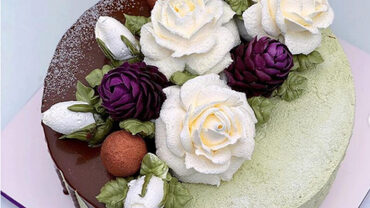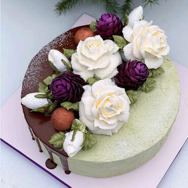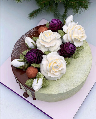 Торт полностью украшен моим идеальным кремом,кремом без масла . Как его зовут?Правильно! Белковый заварной крем.
