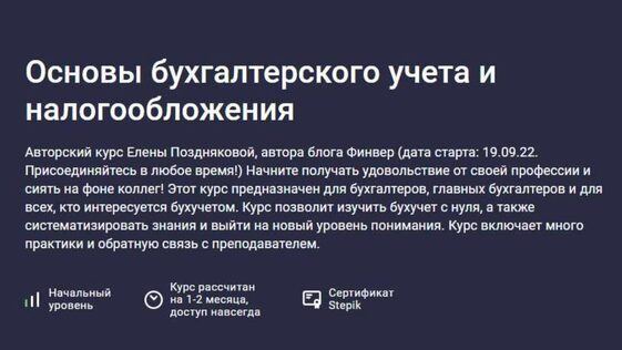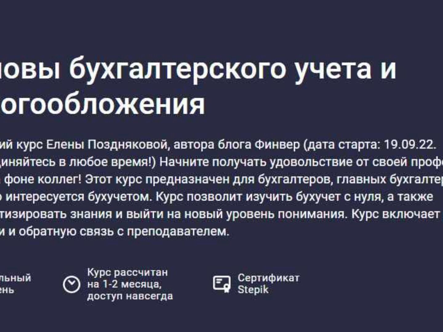 Елена Позднякова «Основы бухгалтерского учета и налогообложения» — Stepik