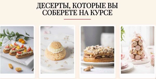 Тариф Стандарт Урок 0 Инструменты и ингредиенты Урок 1 Торт Смородина-Маскарпоне Урок 2 Шоколадный торт Урок 3 Торт Клубничный крем Урок 4 Торт Малина-Лимон Урок 5 Торт Миндаль-Кокос Доступ на 1 год Рабочая тетрадь с рецептами и конспектами Таблица для расчета себестоимости Калькулятор кондитера
