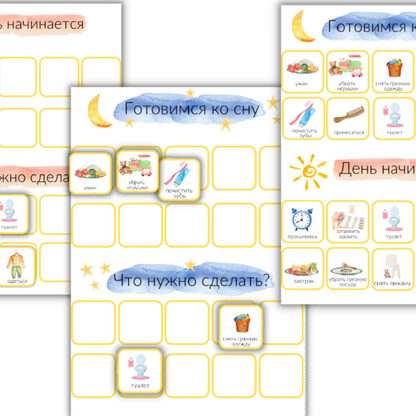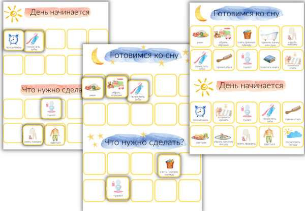 Я подготовила 10 утренних и 10 вечерних дел, но для деток помладше можно начать с меньшего количества, постепенно добавляя новые