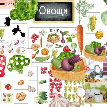 Маленькие исследователи соберут пазлы, разложат овощи по нужным корзинкам, найдут овощи по фрагменту, цвету и тени, найдут спрятанную морковку среди кукурузы и перчик среди томатов, сделают заплатки на тыкве и брокколи, наклеит овощи на грядку и поиграют в овощное мемори.