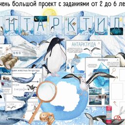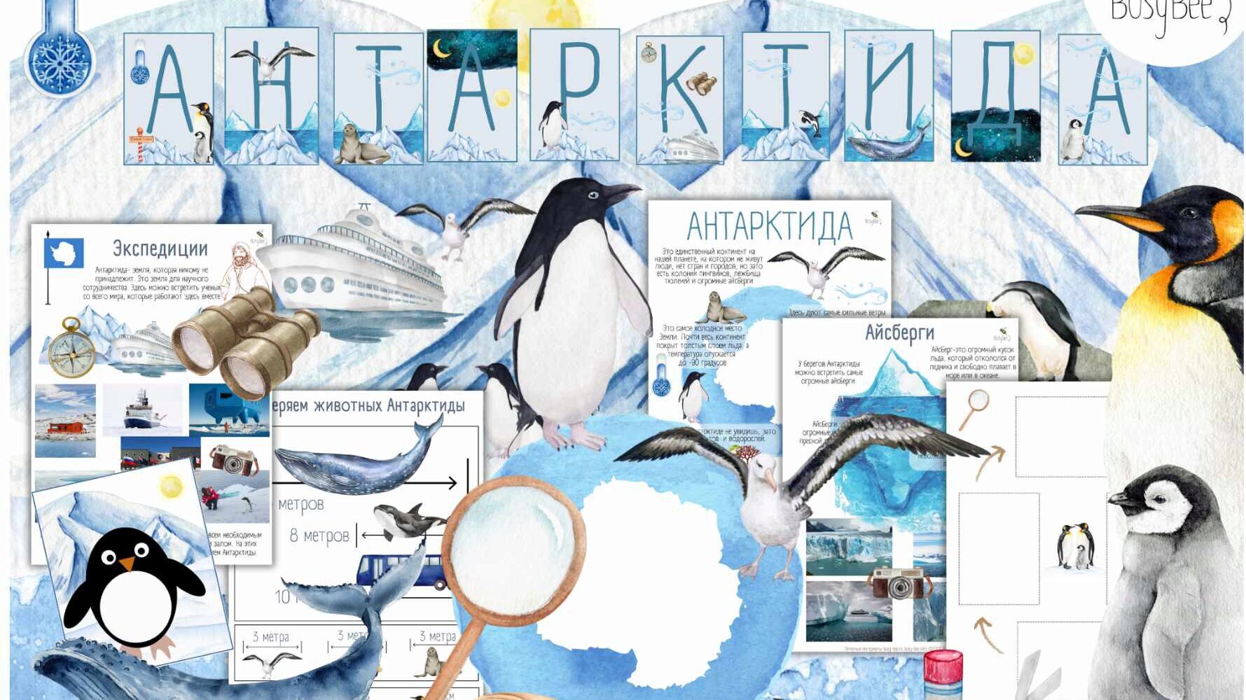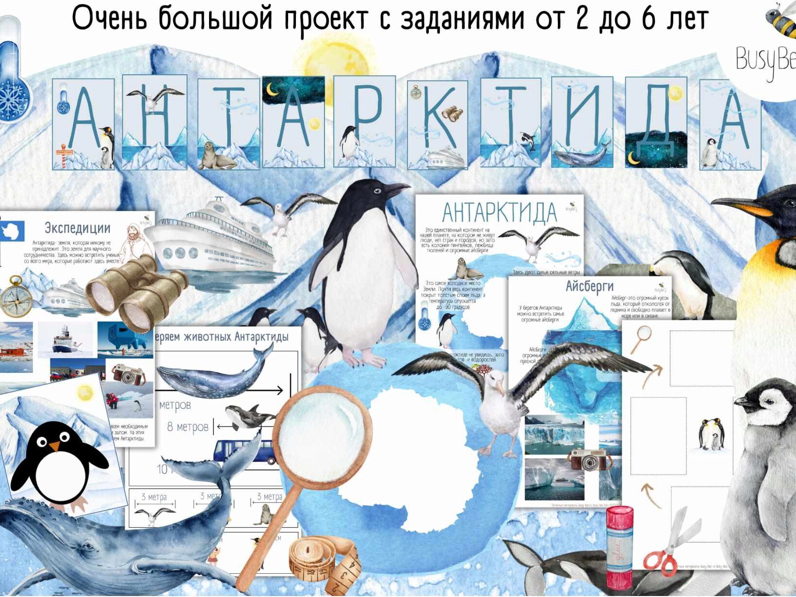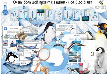 [busy-bee] Проект Антарктида Антарктида. Оказывается, где-то всегда да зима и очень холодно. Но даже в таком холодном месте жизнь кипит. Пингвины, косатки, киты, айсберги и экспедиции. Измерить рост пингвинов, удивиться, какой огромный синий кит, самостоятельно заморозить лед, написать букву Т и