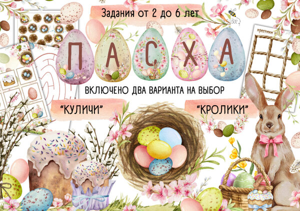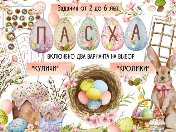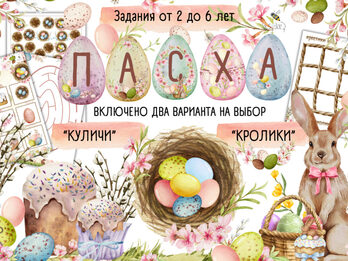 В пасхальном проекте собраны задания для деток от 2 до 6 лет. Есть общая часть с флажками, декором, играми (бинго, крестики-нолики, что общее) и папки с заданиями по возрасту и уровню знаний.