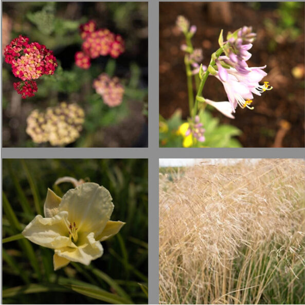 Яснотка, медуница, окопник, катран, копытень, роджерсия, мшанка, молодило, камнеломка, очиток, чистец, хауттюйния, пахизандра, вальдштейния, астильбоидес, белокопытник, дармера, бруннера, посконник, маклея, страусник, щитовник, кочедыжник, адиантум, листовник, многоножка, многорядник, бор, бухарник, вейник, райграс, осока, овсяница, императа, кортадерия, ковыль, колосняк, мискантус, щучка, молиния, пеннисетум, просо, фалярис