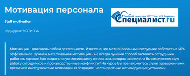 По окончанию обучения Вы сможете самостоятельно разработать систему нематериальной мотивации в Вашей конкретной компании. Теперь Вы будете знать, как мотивировать каждого сотрудника с наилучшим результатом!