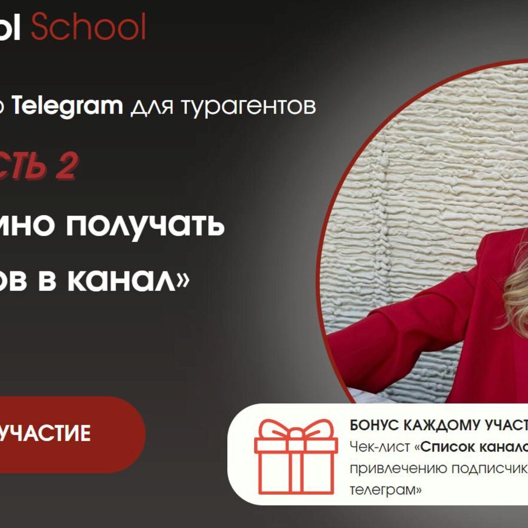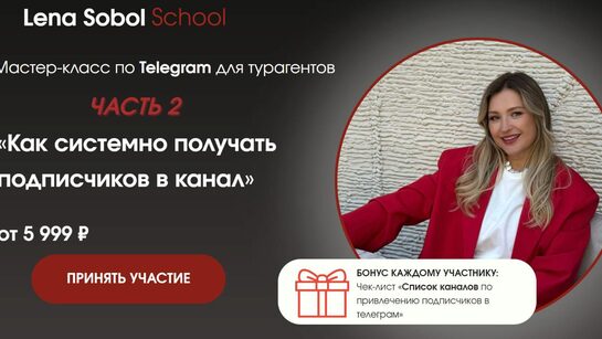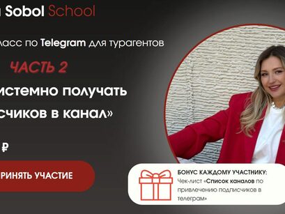 Что вы получите на Мастер-классе? Внедрите 3 продающих инструмента, которые увеличат количество заявок из канала Поймете, с помощью каких действий вы можете превращать подписчиков в покупателей туров Узнаете как оформить кейсы туристов, чтобы получить заявки на туры Заберете инструменты, с помощью