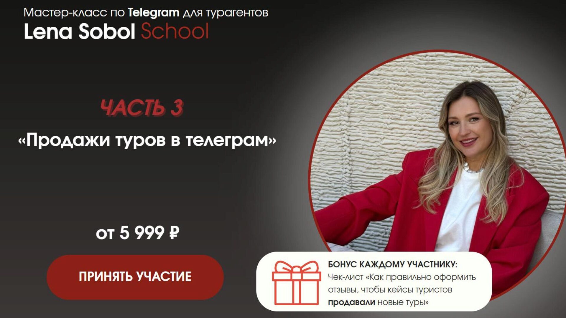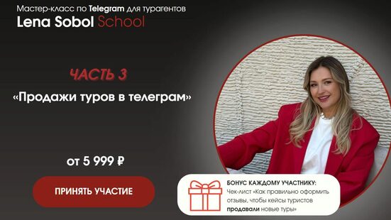 Отзывы о курсе «Продажи туров в телеграм. Часть 3. Без обратной связи» от Елены Соболь