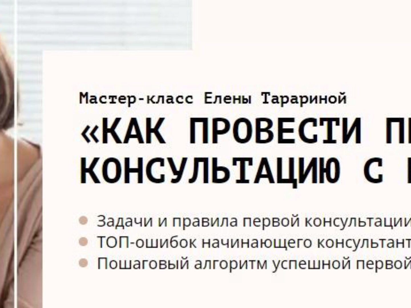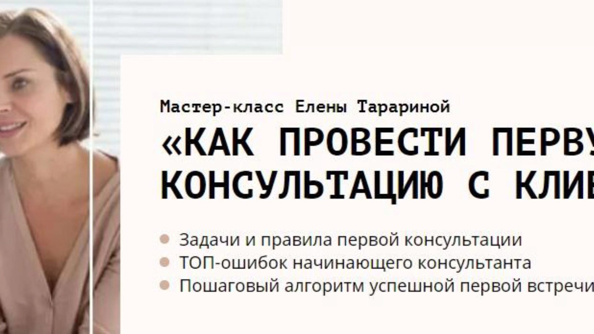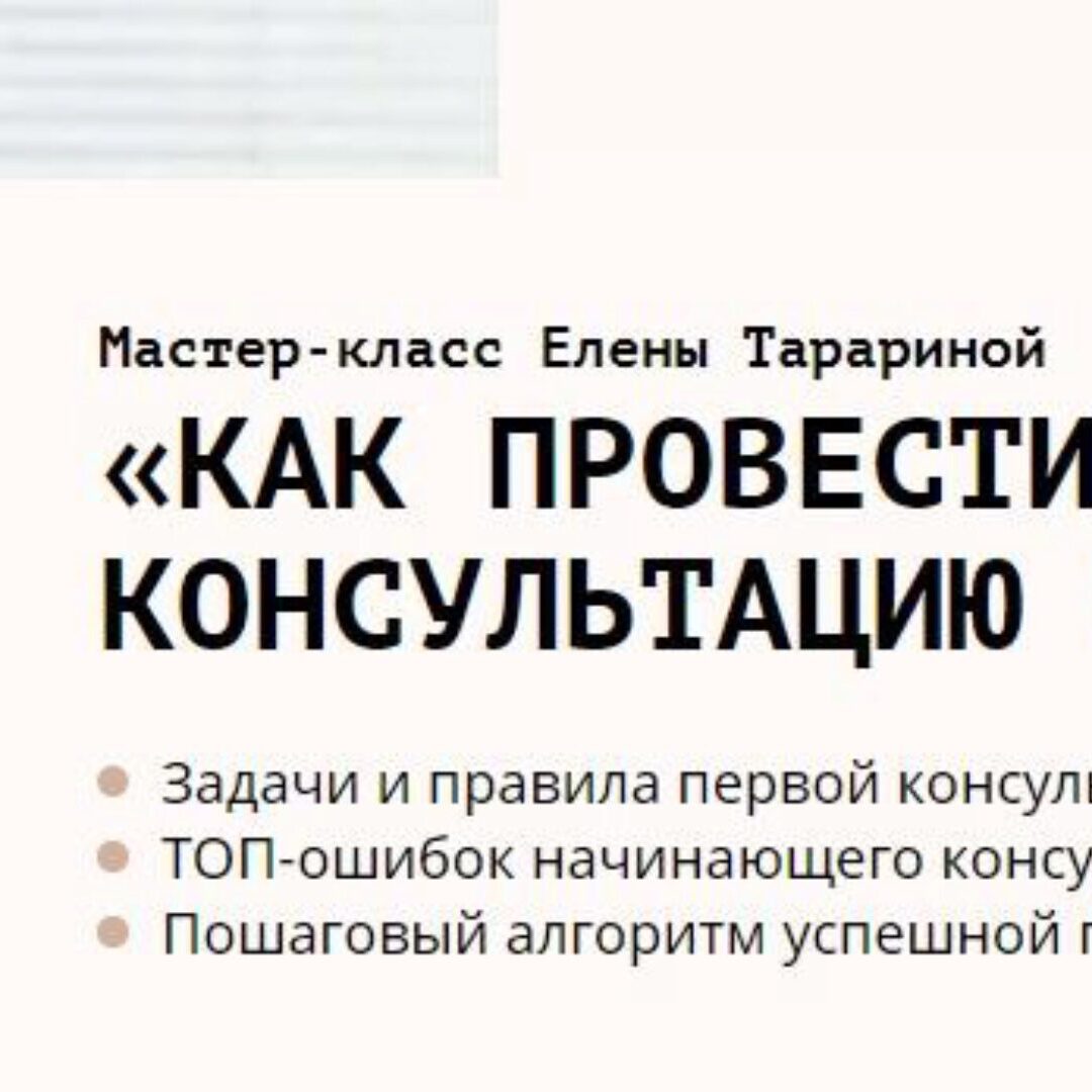 Елена Тарарина Мастер-класс «Как психологу провести первую консультацию с клиентом»