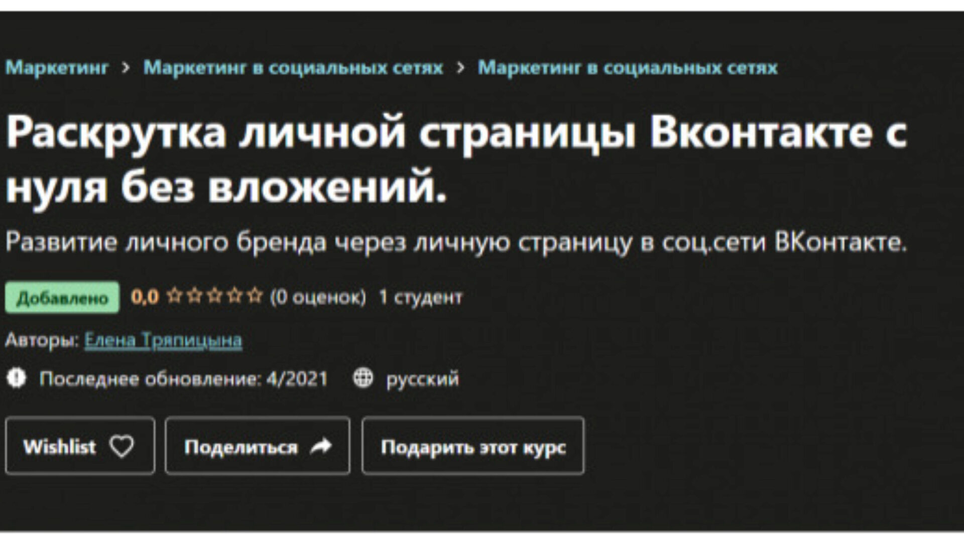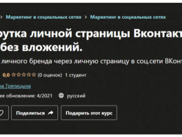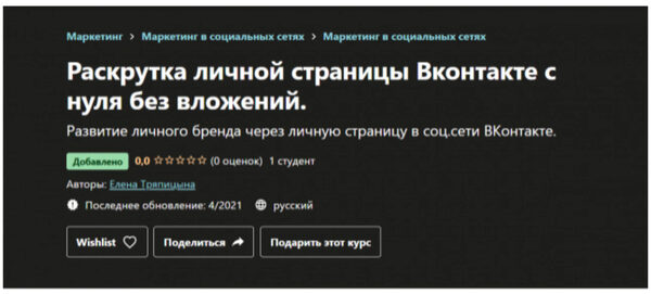 Елена Тряпицына «Раскрутка личной страницы Вконтакте с нуля без вложений» — Udemy