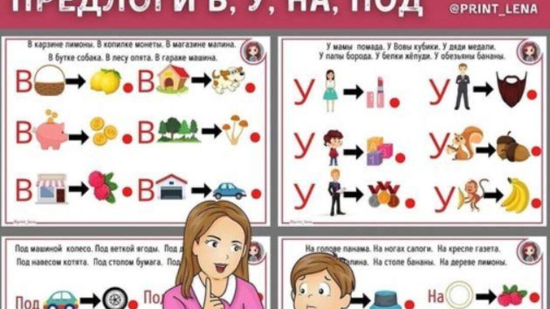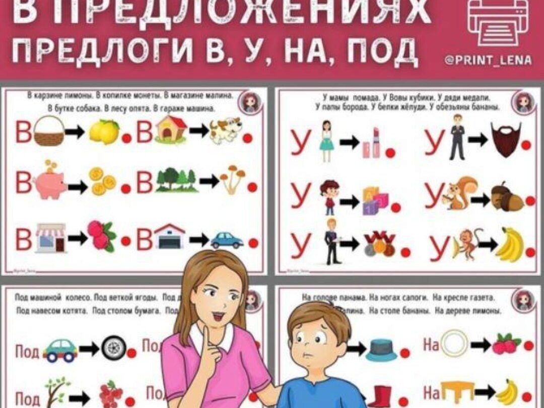 Елена Ефименко «Слоговая структура слова - 1, 2 тип. Отработка в предложениях. Предлоги: в, у, над, под» — print_lena