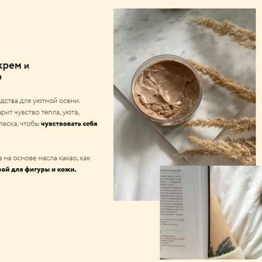 Шоколадный крем мы делаем около 5 лет. Покоряет своей текстурой, цветом и ароматом. А так же эффектом. Кожа напитанная, гладкая, увлажненная.