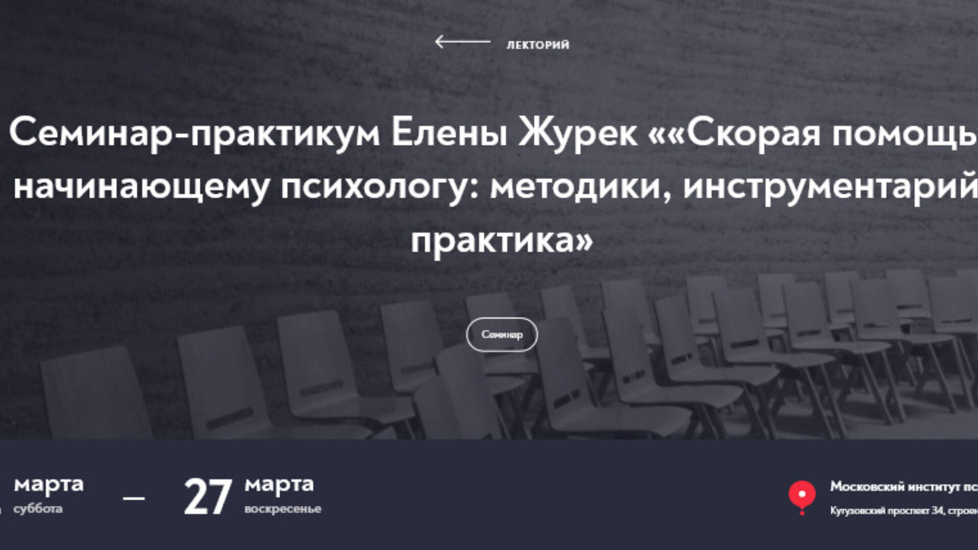 Семинар создан для студентов и тех, кто уже окончил учебу в области психологии. Для тех, кто готов начать практиковать или уже начал, но неуверенность, нехватка практических навыков, страхи, нерешительность мешают, тормозят, останавливают.