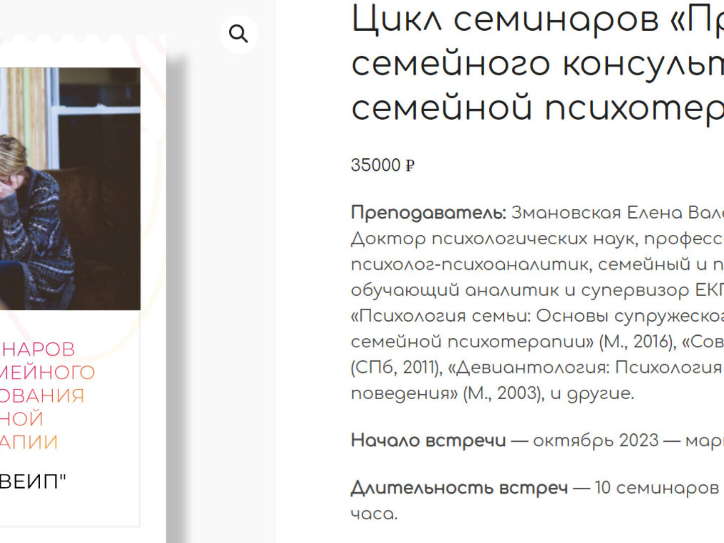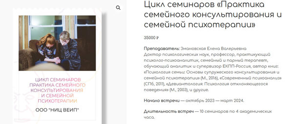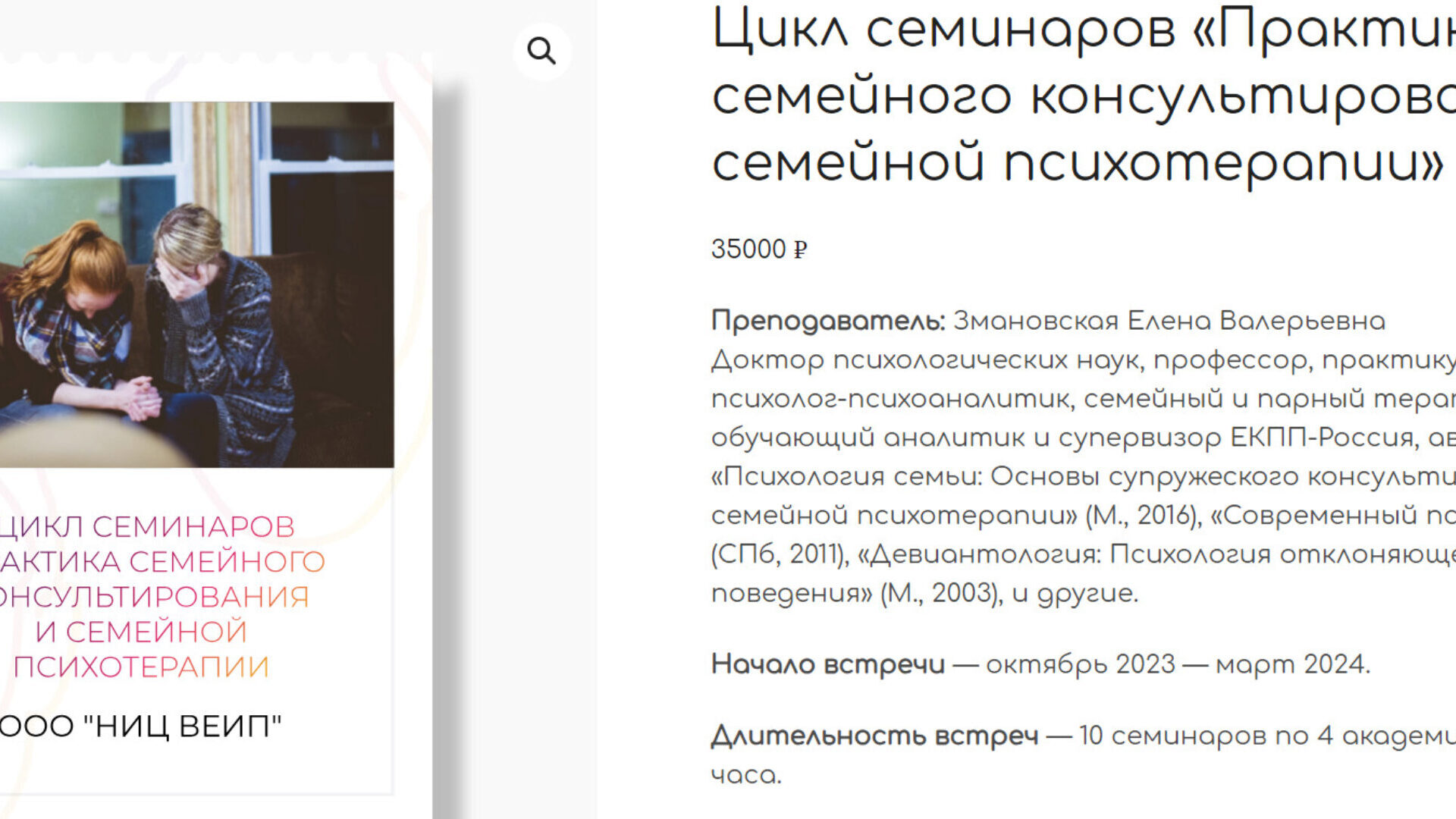 Елена Змановская «Цикл семинаров Практика семейного консультирования и семейной психотерапии» — ВЕИП