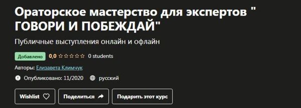Елизавета Климчук «Ораторское мастерство для экспертов говори и побеждай» — Udemy