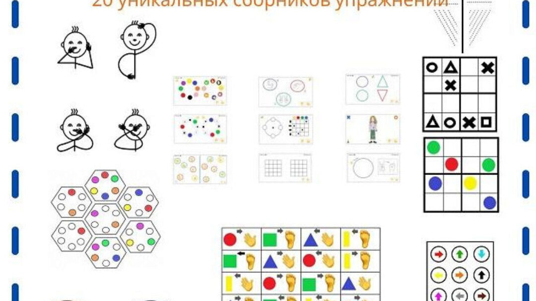 Сборник из 100 разнообразных нейропсихологических заданий для развития: внимания, памяти, мышления, логики, пространственных представлений, двуручной координации, межполушарных связей. Упражнения рассчитаны на детей разного возраста: 5−12 лет. Есть более простые и более сложные задания. Некоторые