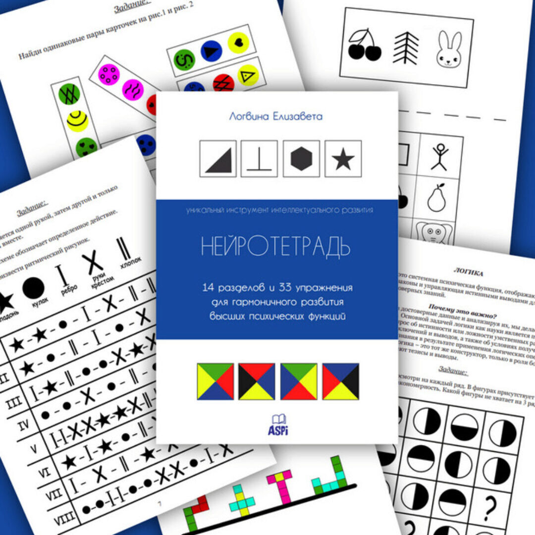 В сборнике на 42 страницы «Нейротетрадь» представлен комплекс упражнений для гармоничного развития высших психических функций.