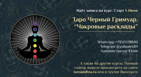 Продвинутый курс по Таро «Черный Гримуар» Требуемый уровень подготовки: умеете делать расклады, знакомы с колодой. Либо проходили базовый курс по колоде. Материалы, представленные в данном курсе, отличаются от базового, углублены и расширены. Дополнительно включены ценные записи прямых эфиров с