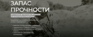 Вы получите специализированную программу, которая позволит вам быть боеспособными и постоянно «на пике» физической формы.