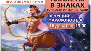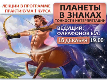 16 декабря в 19.00 приглашаем всех желающих на лекцию в программе регулярного практикума 1 курса; «Пла**неты в знаках. Тонко**сти интерпретации»