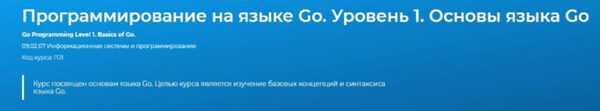 - Курс включает в себя рассмотрение синтаксиса языка Go , а также базовых инструментов стандартной библиотеки Go для создания простейших CLI и веб-приложений.