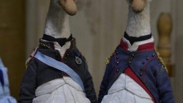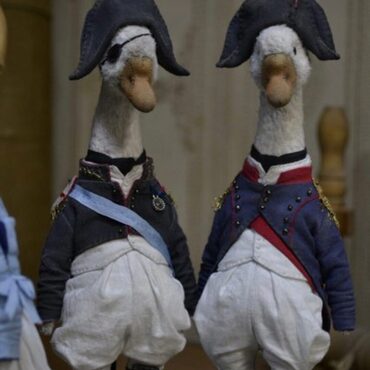 В мк будет три вида костюмов: первый- это совершенно новый, который вы сейчас видите на фото ! Это гусар французской армии в мундире с кивером. А другие два вы уже видели: это Кутузов с Наполеоном (вы очень давно их просили !) В этот мк еще входит выкройка большого гуся 36 см (вы видите его на