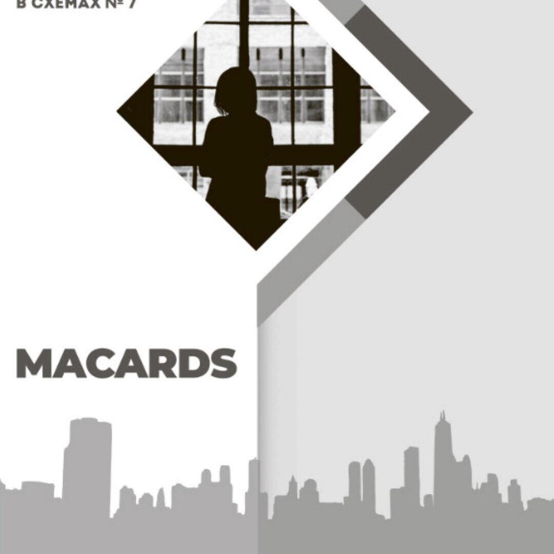 Проект «Macards». Составитель: Баксан Евгения. Инструмент представляет собой тематический набор карточек, с подробными инструкциями и краткими схемами техник для работы с МАК. Комплектация: 16 карточек размера А5 (матовая ламинация). Упаковка с инструкцией (глянцевая ламинация). Тема данного набора