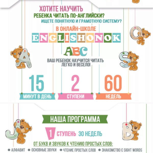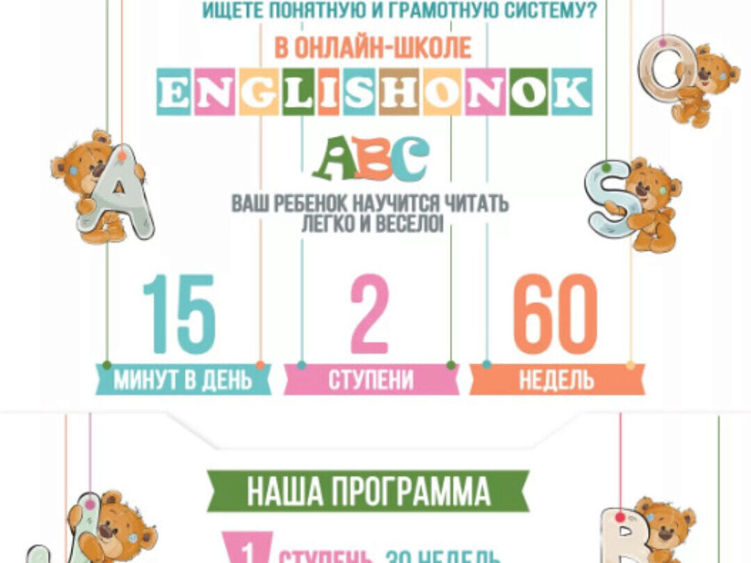 Курс основан на авторской методике ведущих специалистов по раннему английскому, подтвержденной реальными результатами.