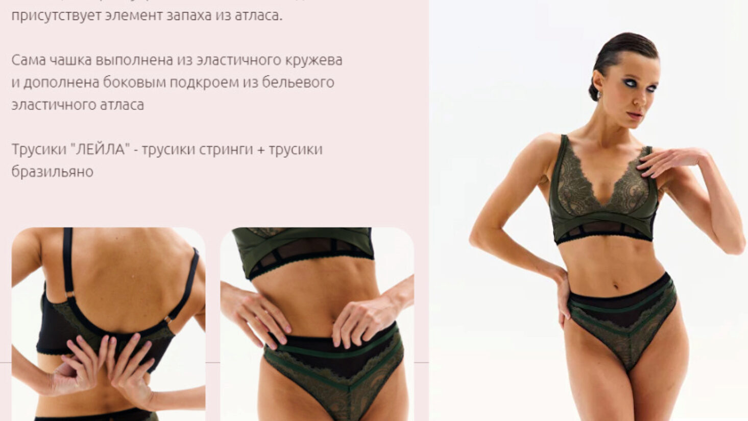 «Симона» — комплект нижнего белья, который состоит из бюстгальтера на низких каркасах с высокой чашкой и трусиков-бразильяно с разделителем. Бюстгальтер «Симона» — бюстгальтер с глубоким вырезом, без подкладки, на бретелях 1,5 см. Чашка выполнена из неэластичных материалов (бюстовая сетка),