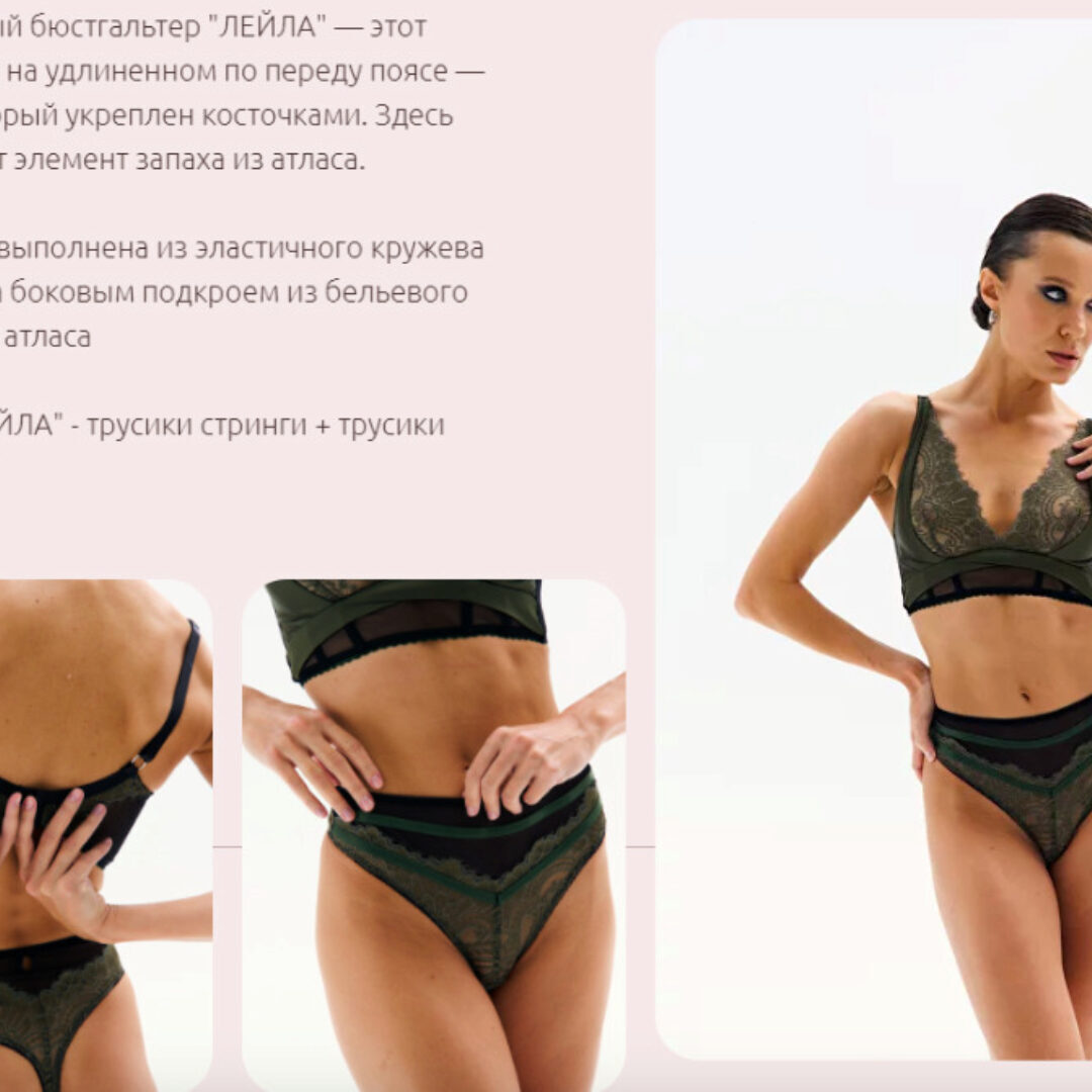 Комплект — «АИДА» Синтез каркасного и бескаркасного бюстгальтера. Подойдет как на большую так и на маленькую грудь. В основе чашка на высоких каркасах из бельевого поролона сверху бескаркасная конструкция с запахом с одной вытачкой из эластичной сетки. По низу широкий пояс. По спинке широкая