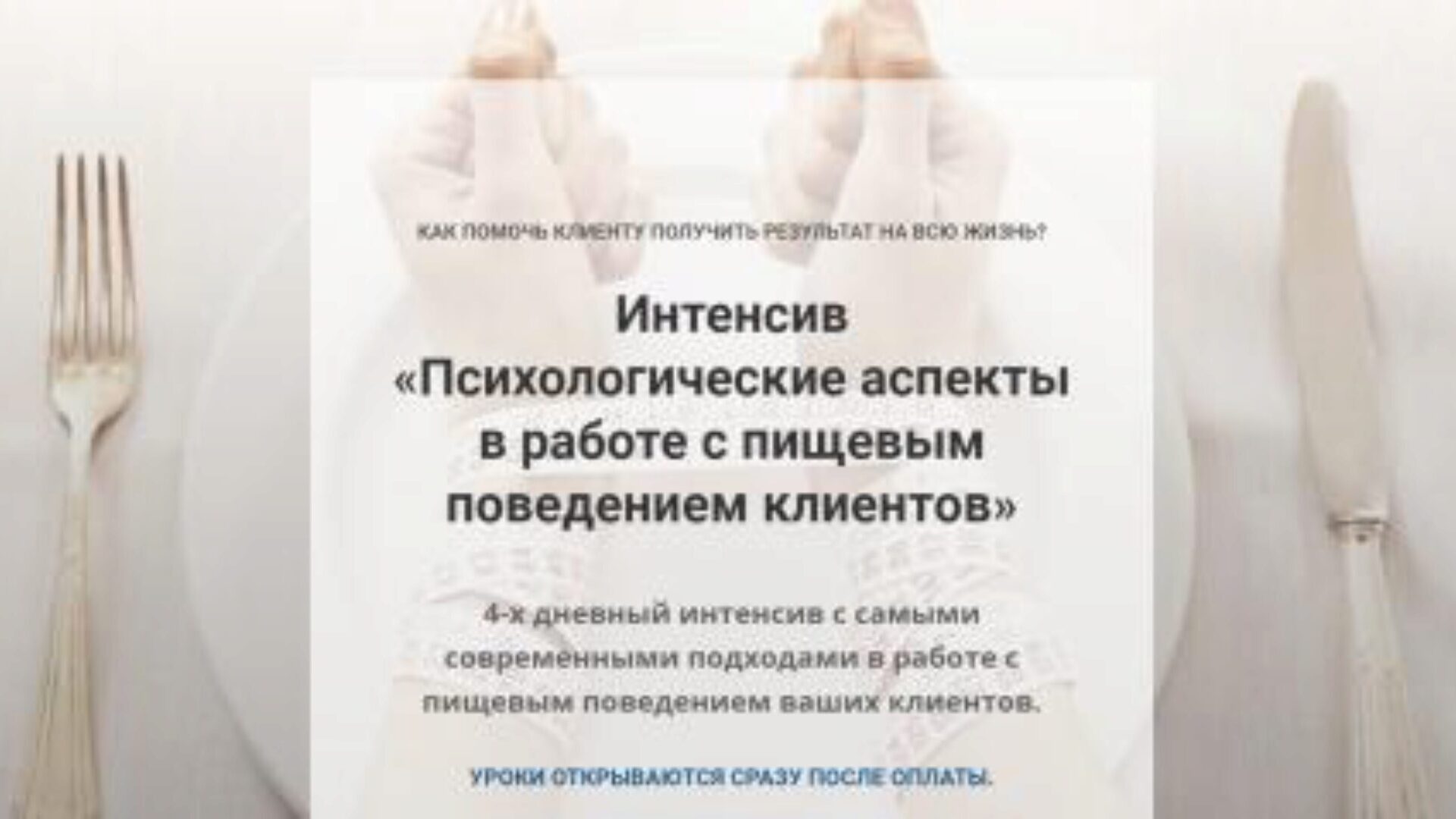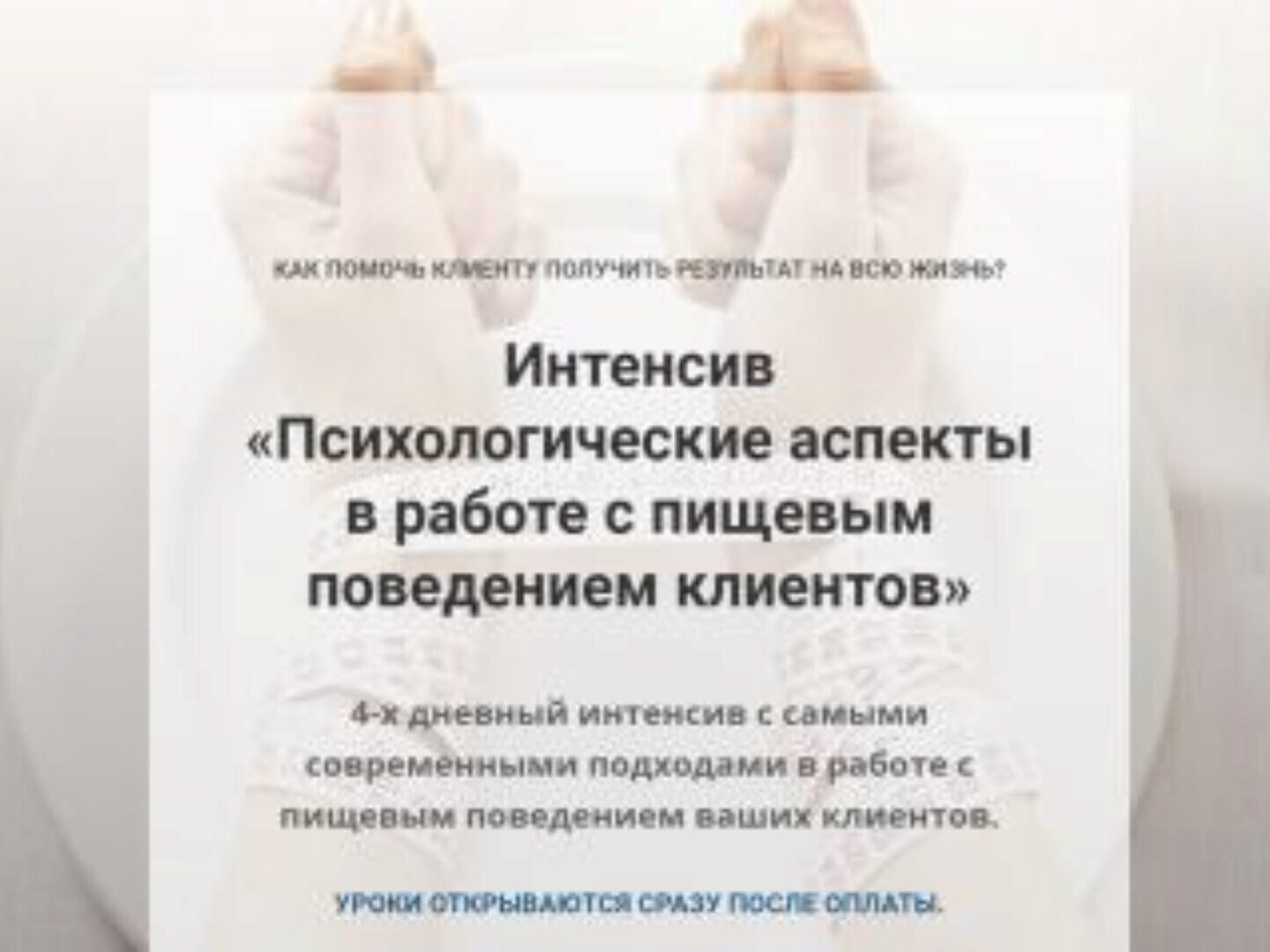 4-х дневный интенсив с самыми современными подходами в работе с пищевым поведением ваших клиентов.