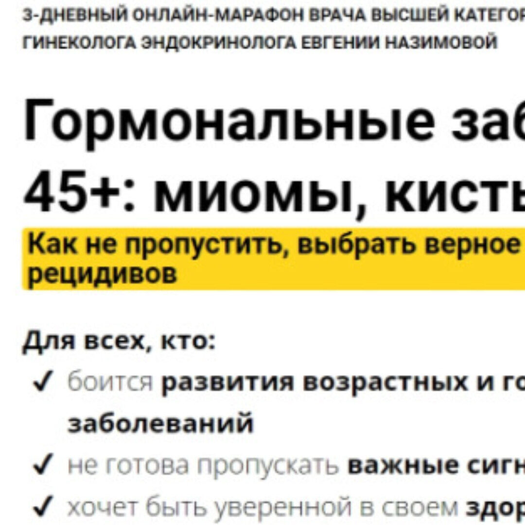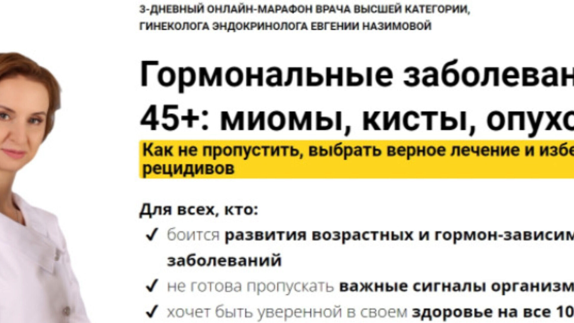 Отзывы о курсе «Гормональные заболевания 45+: миомы, кисты, опухоли. Как выбрать верное лечение» от Евгении Назимовой