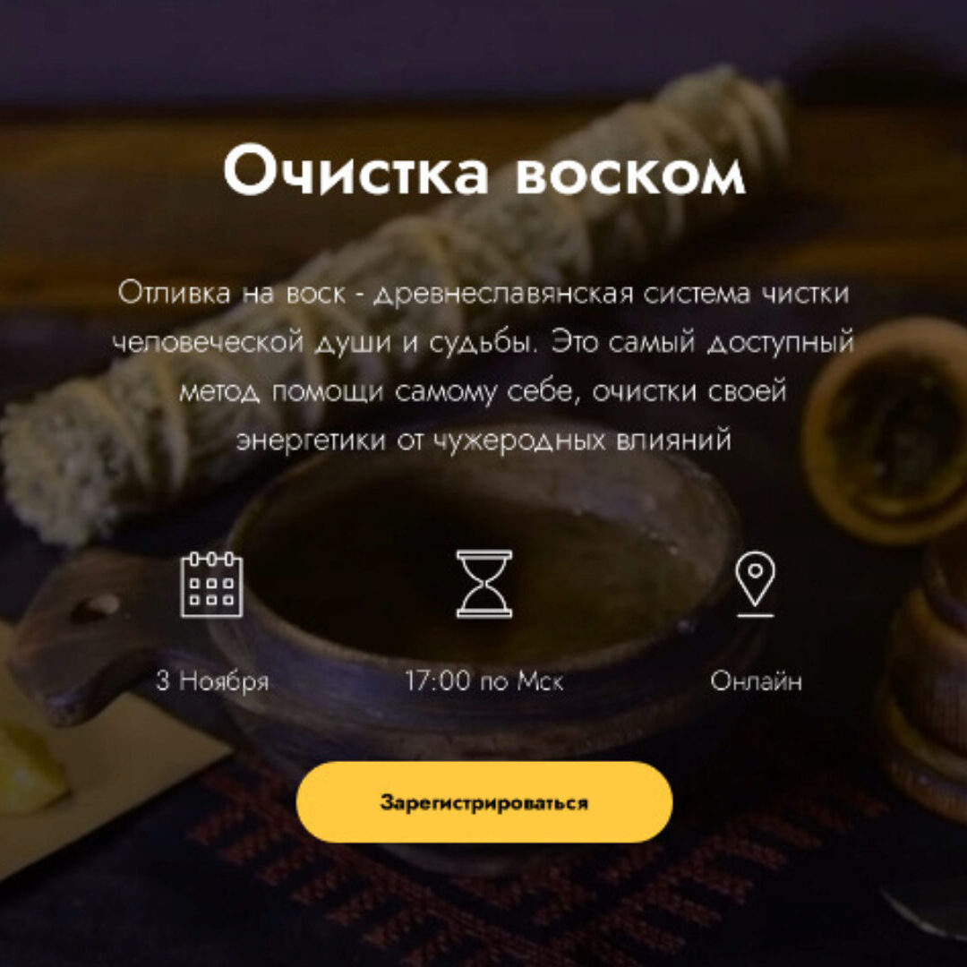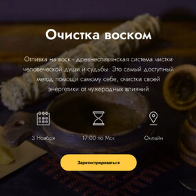 За время одного вебинара Вы научитесь делать чистку воском, освобождаться от энергетических привязок, ставить на себя защиту.