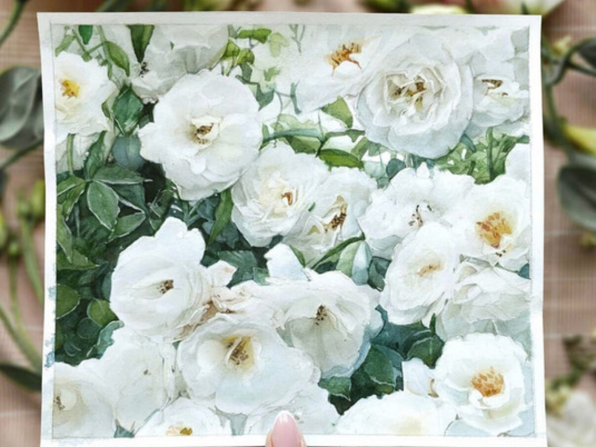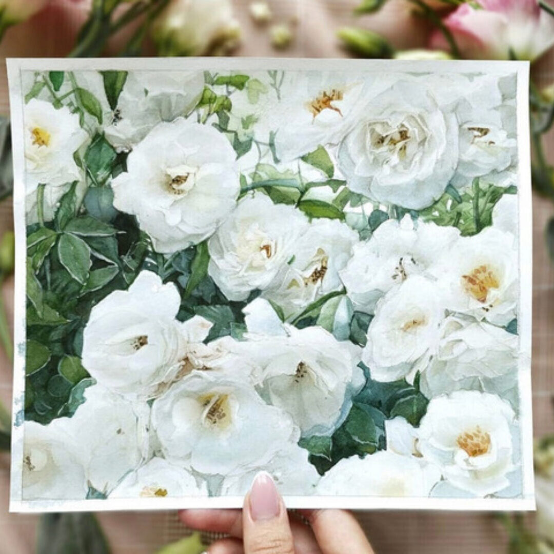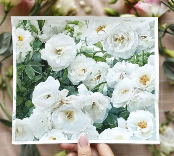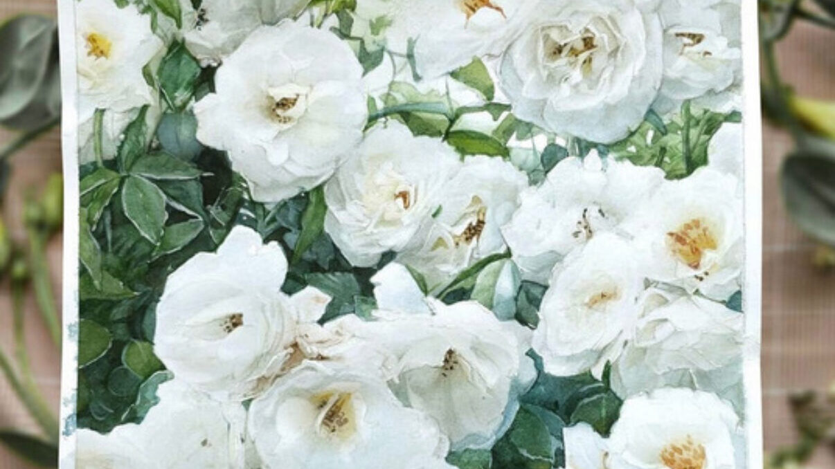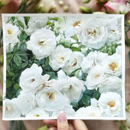 разберем особенности передачи белых цветов в акварели;