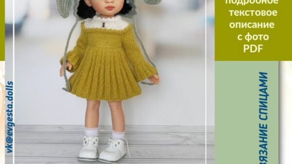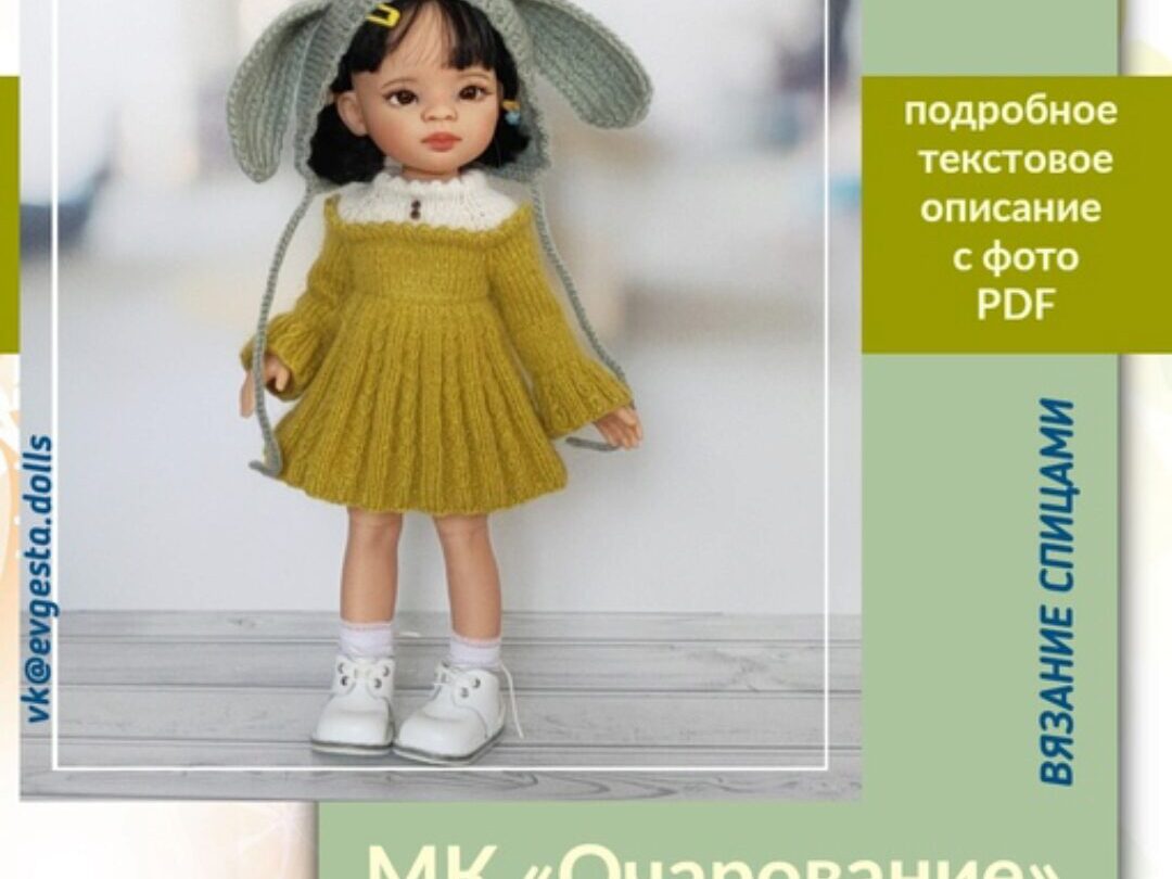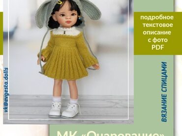 Описание (в формате PDF) вязания спицами комплекта одежды для кукол Паола Рейна 32-34 см и им подобных. В комплект «Недотрога» входит платье со съемным воротником и берет. МК в формате PDF включает в себя: перечень необходимых материалов и инструментов: - подробное текстовое описание вязания -